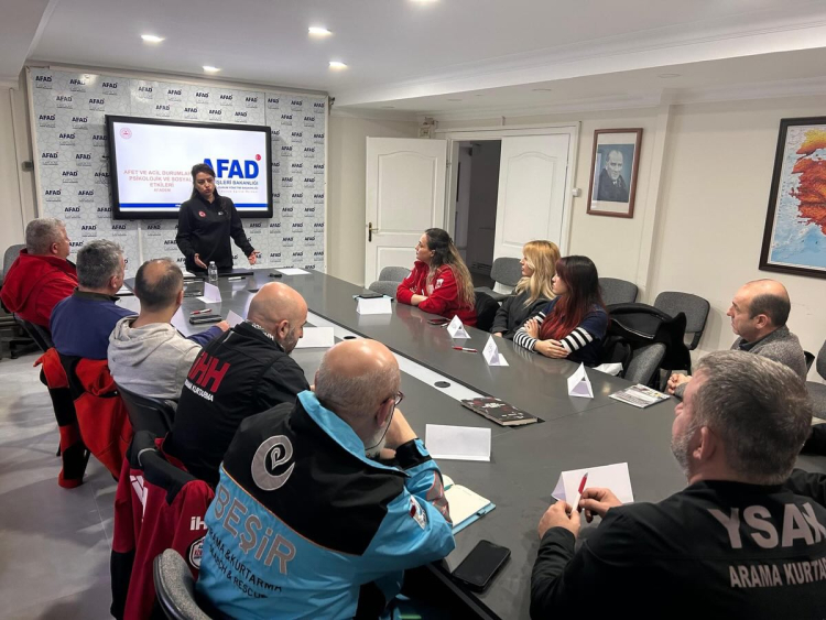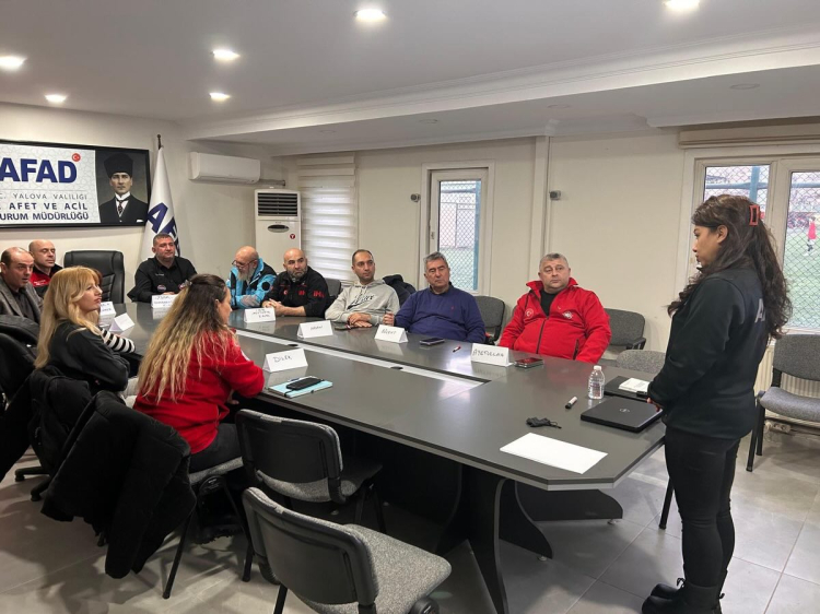 Yalova genelinde arama kurtarma faaliyetleri yürüten sivil toplum kuruluşlarının afet sahasındaki etkinliğini güçlendirmek amacıyla AFAD Yalova İl Müdürlüğü tarafından başlatılan eğitim çalışmaları hız kesmeden devam ediyor. Bu kapsamda AFAD Toplantı Salonunda gerçekleştirilen programda, sosyal çalışmacı Ezgi Yalçın İlhan tarafından Esenköy Arama Kurtarma Derneği (ES-AK) üyelerine kapsamlı bir "Afet Psikolojisi ve Psikososyal Destek" eğitimi sunuldu. Eğitime Esenköy Arama Kurtarma Derneği Başkanı Şenol Caner ve çok sayıda dernek üyesi katılım sağlayarak, zorlu saha koşullarında yürütülecek psikolojik süreçlere dair detaylı bilgiler edindi.