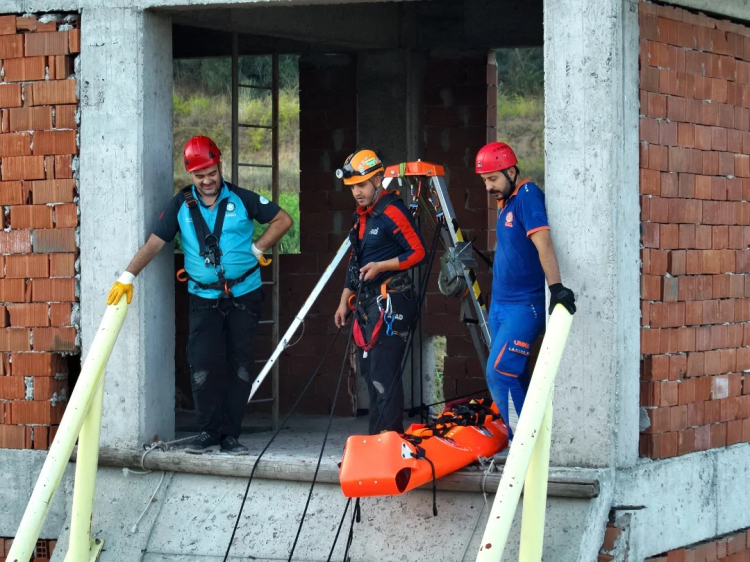 Yalova UMKE ekibinin de katıldığı eğitim kapsamında ip ve düğüm bilgisi, enkazda tripod kullanımı, kule, kaya ve eğimli arazide iniş tırmanış, dere geçişi ve hava hattı kurulumu faaliyetleri gerçekleştirildi.