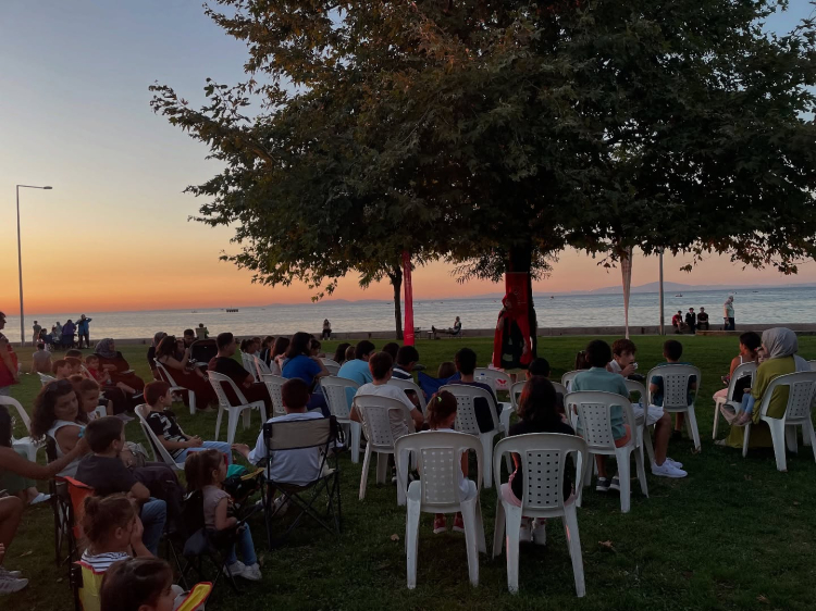 Yalova Sahil Anıt bölgesinde düzenlenen etkinliklerde, masal anlatıcısı Birgül Samurzirek’in anlatımıyla çocuklar masalların büyülü dünyasında keyifli vakit geçirirdi.