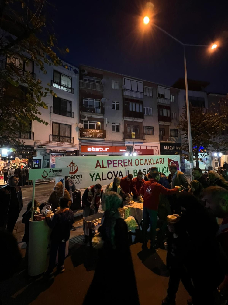 Alperen Ocakları Yalova Şubesi ve Kadın Kolları Başkanlığı, geçtiğimiz günlerde düşen kargo uçağında şehit olan 20 askerimiz için Yalova Merkez Camisi avlusunda vatandaşlara çorba ikramında bulundu. Etkinlikte şehitler rahmet ve dualarla anılırken, vatandaşlara ikram edilen çorba vesilesiyle birlik ve beraberlik mesajı verildi.
