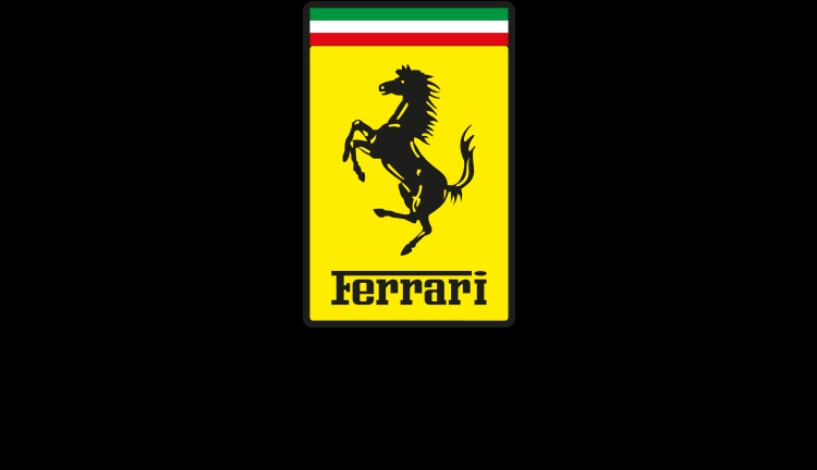 İtalya’nın en ünlü markası olan Ferrari’nin logosunun üst kısmında İtalyan bayrağı, font olan yerinde sarı renk Modena şeri simgeleniyor. Firmanın tam adı olan Scuderia Ferrari’nin baş harfleri logoda yerini alıyor. Siyah At simgesi, firmanın kurucu olan Enzo Ferrari’ye 1. Dünya Savaşı sırasında oğlu şehit olan bir annenin oğlunun uçağında yer alan şaha kalkan at logosunu kullanması istemesiyle ortaya çıkıyor. Bu logo aynı zamanda o pilot için bir yas olarak ifade ediliyor.