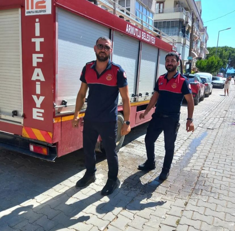 Armutlu’da minik kedinin yardımına itfaiye yetişti