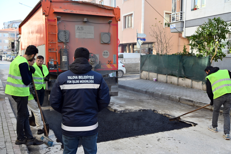 Yalova’nın birçok noktasında tespit edilen bozuk asfalt yollar, Yalova Belediyesi Fen İşleri Müdürlüğü’ne bağlı ekipler tarafından hızla tamir edilerek, ulaşımda yaşanan aksaklıklar ortadan kaldırılıyor.