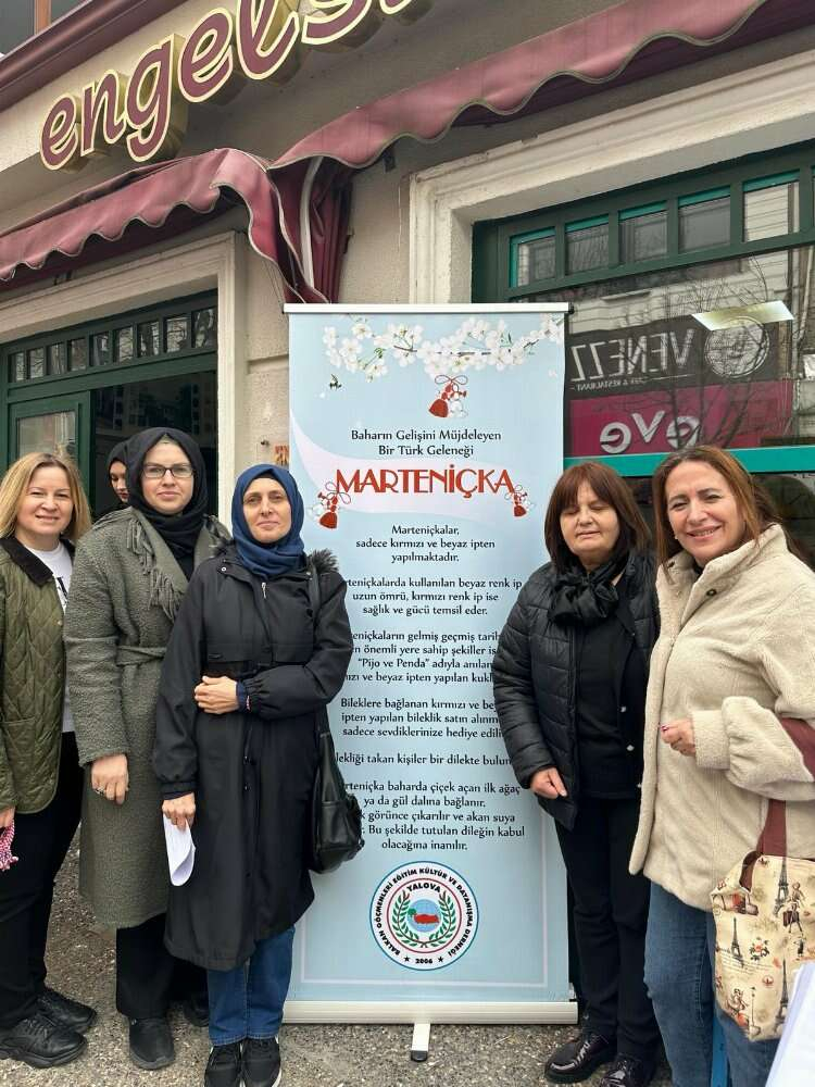 Balkan Göçmenleri Eğitim Kültür ve Dayanışma Derneği Kadın Kolları tarafından baharın gelişi münasebetiyle Yalovalı vatandaşlara dağıtılmak üzere hazırlanan beyaz ve kırmızı yünden yapılan bir süs olan 10 bin marteniçka dernek üyeleri tarafından vatandaşlara dağıltıldı.