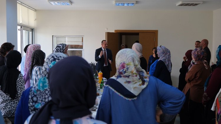Çiftlikköy Belediye Başkanı Adil Yele, Şehit Türkan Bebek Kültür Merkezi’nde eğitim gören dikiş nakış kursiyerleriyle bir araya geldi
