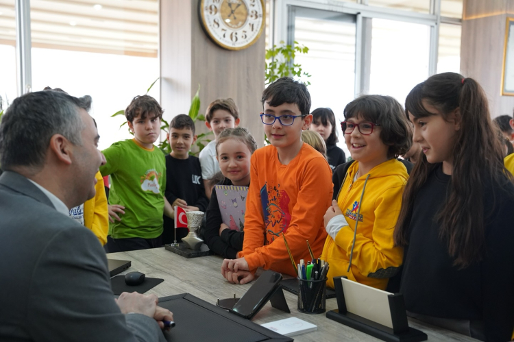 Öğrenciler ise başkanla bir araya gelmenin heyecanını ve sevincini yaşarken aynı zamanda da belediyenin işleyişini ve görevlerini yerinde öğrenme fırsatı buldu.