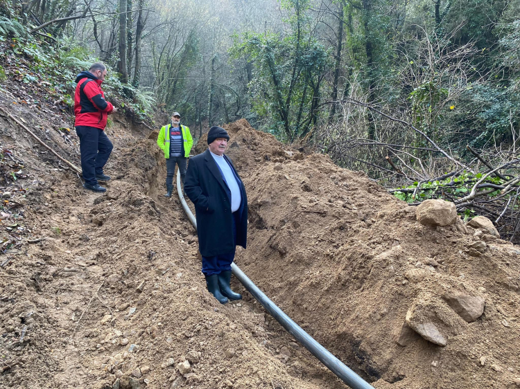 Esenköy Belediye Başkanı Mehmet Temel, yapımı devam eden su hattı çalışmalarını, çalışmaların sürdüğü alana giderek bizzat yerinde inceledi.