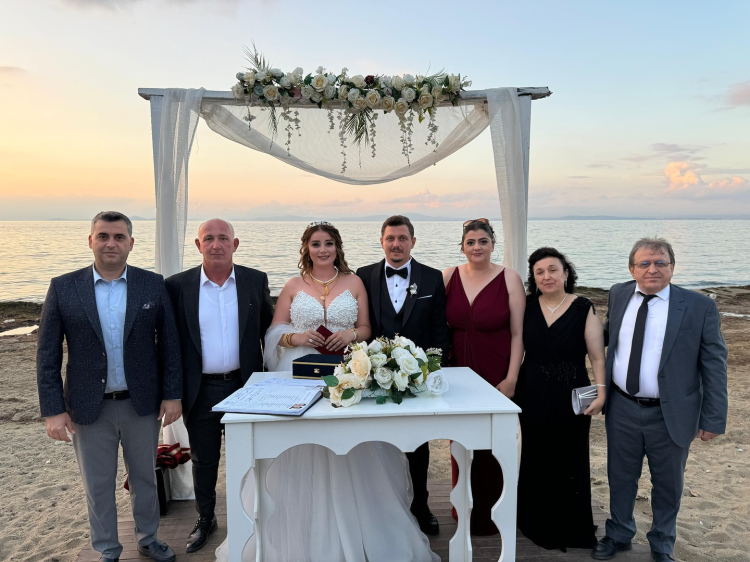 Yaz sezonunun bitmesine sayılı günler kala nikah törenleri de gerçekleşmeye devam ediyor. Kadıköy Belediye Başkanı Yılmaz Tavşan yeni evlenen genç çifti bu mutlu günlerinde yalnız bırakmadı.
