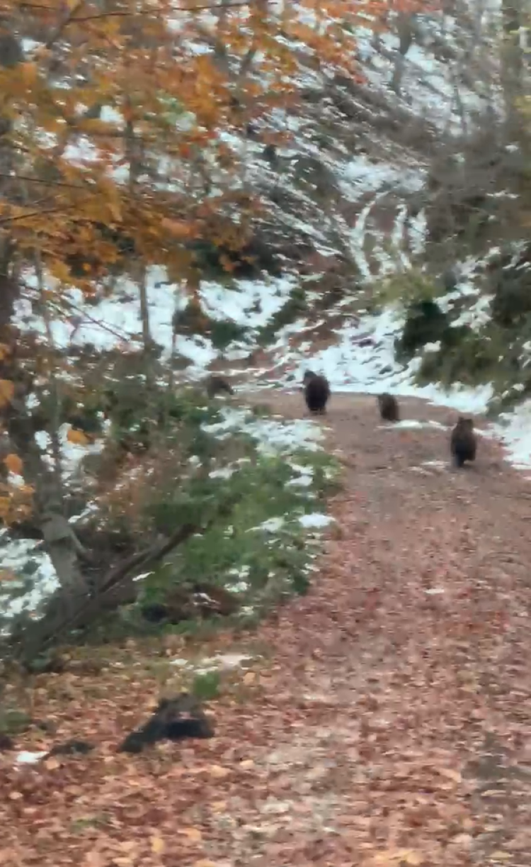 Yalova'nın Termal ilçesinde orman yolunda boz ayı ve 3 yavrusu görüntülendi.