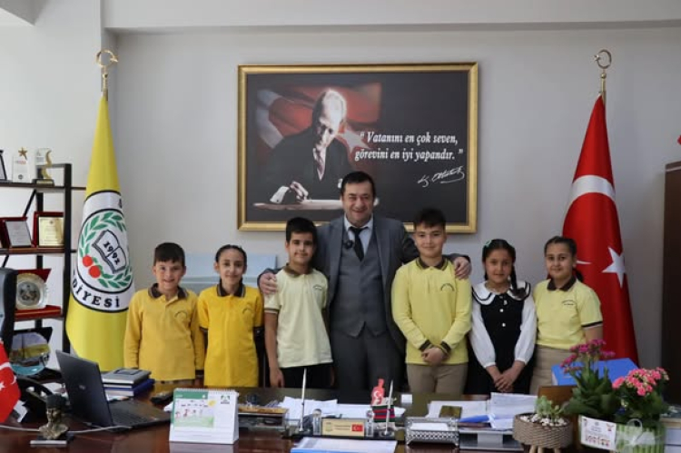Subaşı İlkokulu Müdürü Rıfat Toğrul, Sınıf Öğretmeni Hacer Burtul ve öğrenciler Sahra Gürsu, Ceylan Ay, Hiranur Karadağ, Kuzey Özcan, Emir Ali Subaşı ve Eğe Sağdıç'ı makamında ağırlayan Başkan Canbay, belediye başkanlığı görevini sembolik olarak çocuklara devretti.