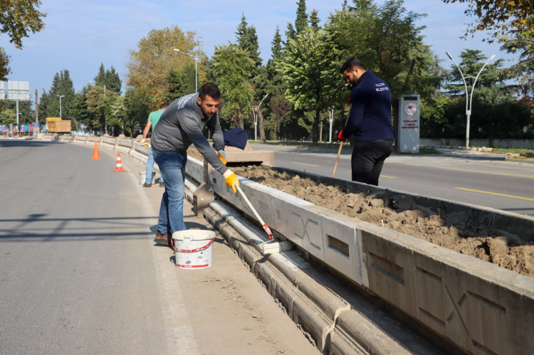 Cengiz Koçal Caddesi orta refüjünde çalışmalar başladı