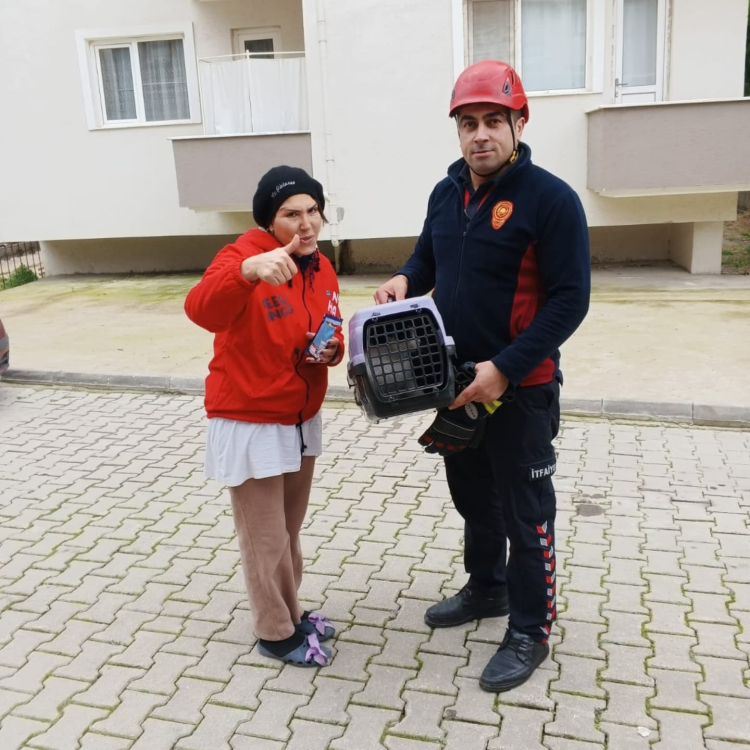 Kısa sürede olay yerine intikal eden Çiftlikköy Belediyesi İtfaiye Müdürlüğü ekipleri, yangın merdiveniyle ulaştıkları teras katındaki kediyi başarılı bir şekilde kurtararak sahibine teslim etti.