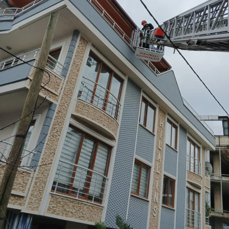 Yalova’nın Çiftlikköy ilçesi Sahil Mahallesi’nde bir binanın teras katında mahsur kalan kedi başarılı bir şekilde kurtarıldı.