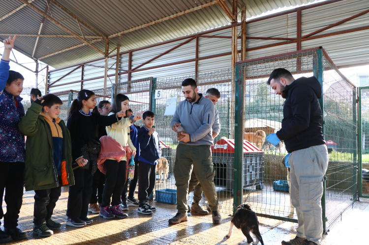 Okul Müdür Yardımcısı Sedat Serin’le, sınıf öğretmenleri Fatma Didem Kaya ve Arzu Tabaru’nun eşlik ettiği öğrencileri, bakımevinde Çiftlikköy Belediyesi Veteriner İşleri Müdürü Ali Çarık ve barınak personeli karşıladı. Ziyaret sırasında, sokak hayvanları için yürütülen çalışmalar hakkında bilgi alan 4-D ve 4-B sınıflarından öğrenciler, kedi ve köpek barınaklarını gezerek sevimli dostlara mama verdi.