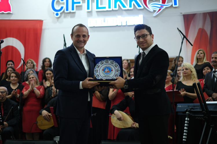 Türkiye Cumhuriyeti’nin 101. kuruluş yıl dönümünde Çiftlikköy Belediyesi Türk Halk Müziği Korosu’nun Atatürk’ün en sevdiği parçaların ağırlıkta olduğu bir repertuarla sahne aldığını dile getiren Başkan Yele, “Anlamlı ve coşkulu bir kutlama oldu, hep birlikte koromuzun parçalarına eşlik ederek bayramımızı bayrama yakışacak bir şekilde kutladık. Eşsiz türkülerle hepimizin yüreğine dokunan koromuza ve emeği geçen herkese sonsuz teşekkürler. Bu güzel akşamı bizimle paylaşan tüm hemşehrilerime de ayrıca şükranlarımı sunuyorum” diye konuştu. Gecenin sonunda Başkan Yele, Koro Şefi Tansu Can’ı ve koristleri tebrik ederek çiçek ve anı tabağı hediyesini takdim etti.