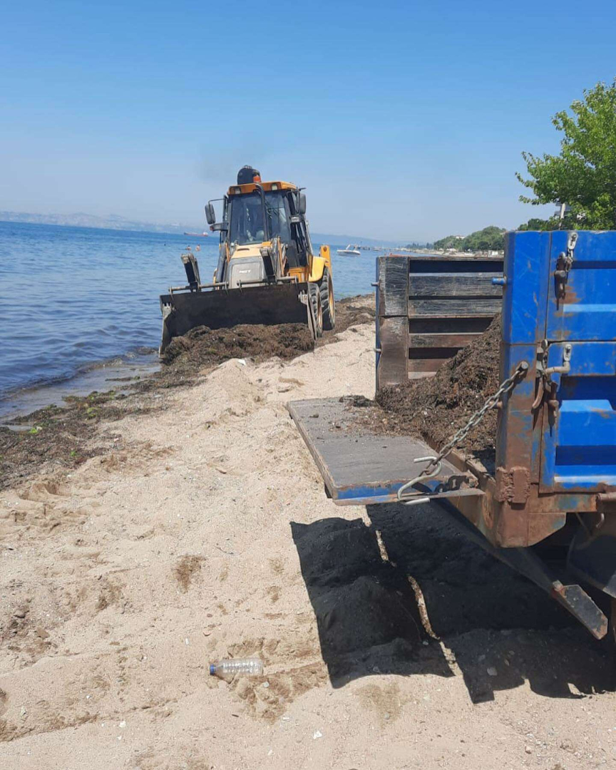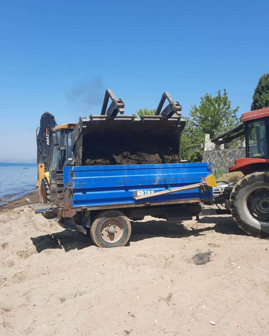 Çiftlikköy Belediyesi, yaz sezonu dolayısıyla yoğun günler geçiren ilçe sahillerini yosundan arındırarak vatandaşların daha temiz bir ortamda denize girmelerine imkan sağlıyor.