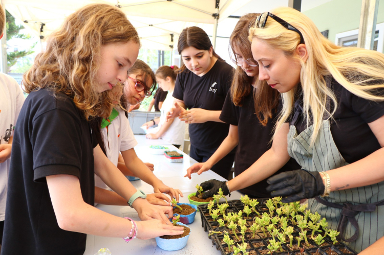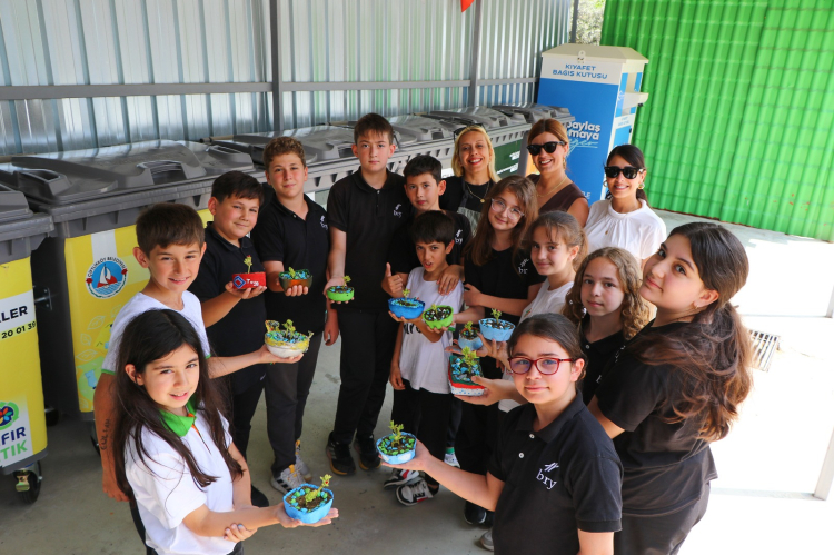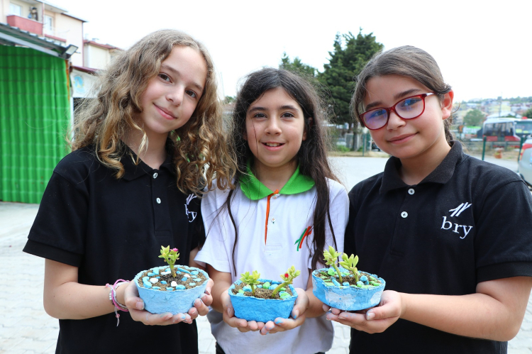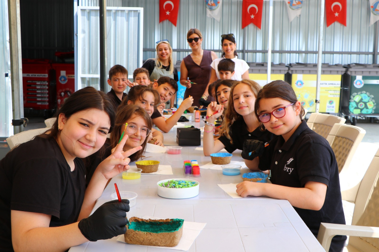 Okulun Fen Bilgisi Öğretmeni Derya Tayhan Kütük ve Görsel Sanatlar Öğretmeni Tuğba Türkkan eşliğinde merkeze gelen öğrenciler, önce kendi hazırladıkları vazoları çeşitli renklere boyadı, ardından kompost makinesinde üretilen organik toprağı kullanarak vazolara sukulent çiçekleri ekti.