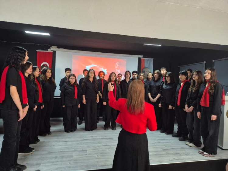 Müzik Bölümü Başkanı Sevil Özmen Gürsoy’un yönetiminde İstiklal Marşı okundu. Okul Müdürü Haydar Kılıç’ın konuşmasından sonra öğrenciler günün önemini ihtiva eden konuşmalar gerçekleştirdi ve şiirler okundu. Daha sonra ise müzik bölümü öğrencileri marşlar söylediler, veliler ve öğrencilerden büyük alkış aldılar.
