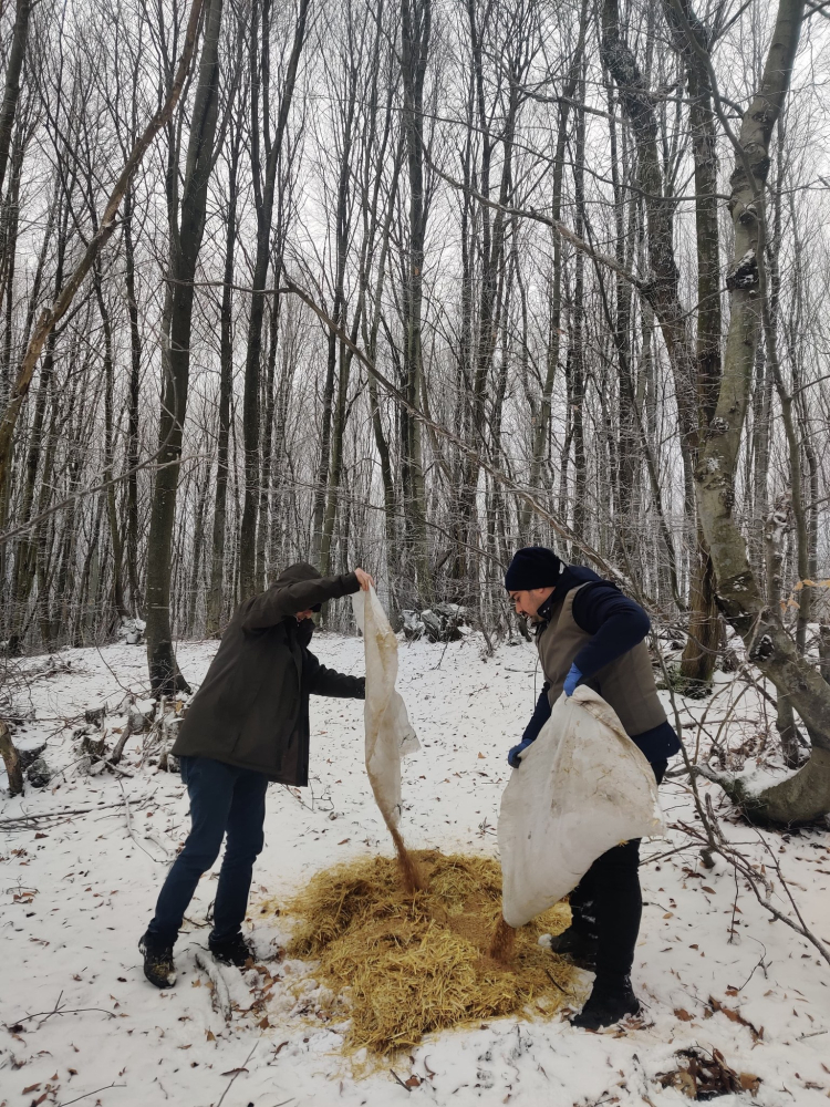 Doğal yaşam alanlarındaki devamlılığı sağlamak adına kış mevsiminin yoğun yaşandığı bölgelerde 10 personel 2 araçla 350 kilo buğday, 50 kilo meyve sebze artığı, 150 kilo saman, 20 kilo yemek artığı ile yemleme çalışması yapıldı.