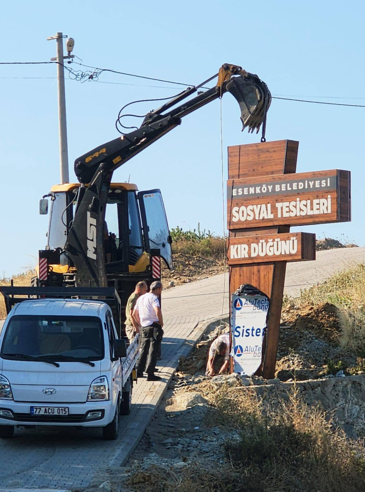 Esenköy Belediyesi tarafından hayata geçirilen Esenköy Belediyesi Sosyal Tesisi ve Kır Düğün Salonu’nun tabela montaj çalışmaları başladı.
