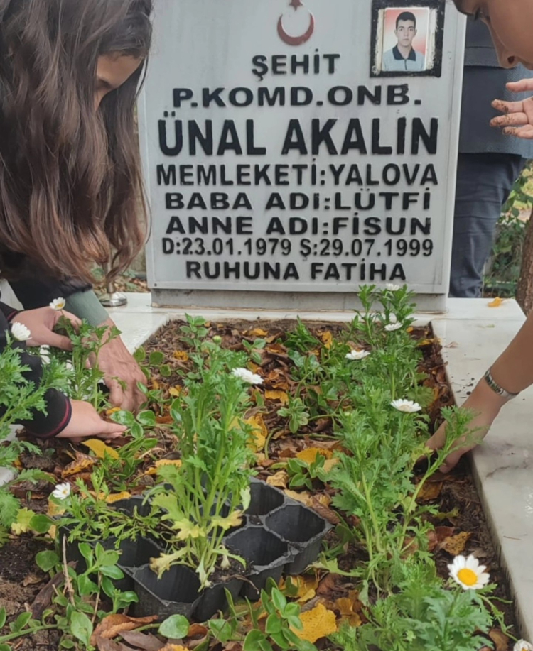 Şehidin kabrinde de dualar okunarak minnet ve rahmetle anma gerçekleştirildi. Ayrıca öğrenciler şehidin kabrini çiçeklerle süsledi.