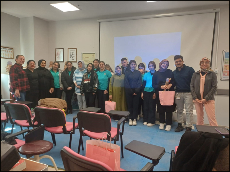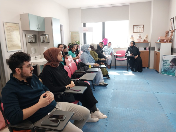 Gebe Okulu eğitimleri anne adaylarının eşleri ile birlikte katılımıyla hız kesmeden devam ediyor. Eğitim programına Kadın Hastalıkları ve Doğum Uzmanı Dr. Öğr. Üyesi Meltem Aydoğdu, Ebe Günnur Çimen, Nene Hatun Kız Meslek Lisesi Öğretmeni Canan Çelik ve öğrencileri katıldı.