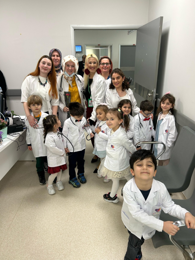 Etkinlikte, miniklerin heyecanı ve coşkusu dikkat çekerken, geleceğin doktorları olma yolunda ilk adımlarını attıkları bir atmosfer oluştu.