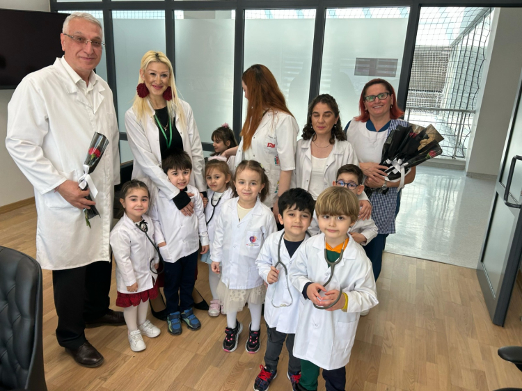 14 Mart Tıp Bayramı dolayısıyla düzenlenen etkinlikte, kreş öğrencileri hastane yönetimini ve anne babası doktor olan personeli ziyaret etti.