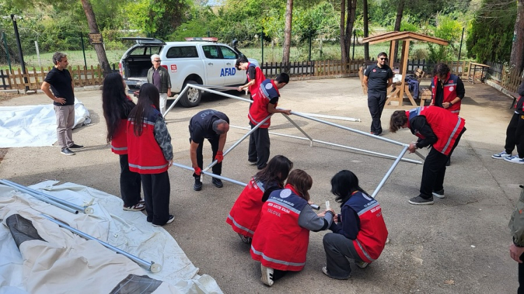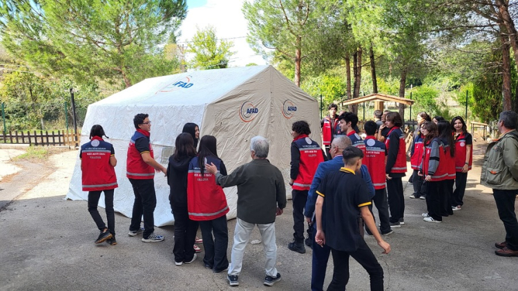 Daha sonra Yalova Valiliği İl Afet ve Acil Durum Müdürlüğü (AFAD) Şube Müdürü Yılmaz Karakaş, Eğitim Uzmanı Harun Nayki tarafından öğrencilere uygulamalı olarak “Çadır Kurma Eğitimi” verildi. 16 Öğrencinin katıldığı bu eğitim çalışmasında iki gruba ayrılan öğrenciler becerilerini kurdukları çadırlarla da göstermiş oldular.