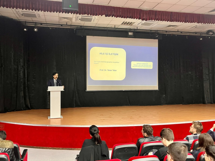 Söyleşide gençlere hitaben kapsamlı bir sunum yapan Prof. Dr. Taner Tatar, aile içi bağların bireyin karakter inşasındaki rolüne dikkat çekti. Sağlıklı bir toplumun temelinin huzurlu bir aile ortamından geçtiğini vurgulayan Tatar, “Aile içi iletişim, sadece bir bilgi aktarımı değil; aynı zamanda sevgi, güven ve aidiyet duygusunun paylaşılmasıdır. Günümüzde teknolojik imkanların artmasıyla birlikte maalesef aynı evin içinde birbirine yabancılaşan bireyler görüyoruz. Oysa aile, toplumun en temel iletişim kalesidir. Birbirimizi dinlemek, anlamaya çalışmak ve empati kurmak; aile bağlarını güçlendiren en önemli unsurlardır. Gençlerimizin aileleriyle kuracağı sağlıklı diyaloglar, onların gelecekteki sosyal başarılarının da en büyük teminatı olacaktır” dedi.