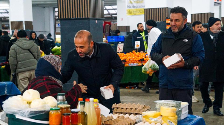 AK Parti Yalova İl Başkanı Umut Güçlü, beraberindeki heyetle birlikte Yalova Kapalı Pazar Yeri esnafını ziyaret etti. Kandil simidi ikramında bulunarak tezgâhları gezen Güçlü, esnafın taleplerini dinleyerek sorunların çözümü için gerekli adımları atacaklarını vurguladı.