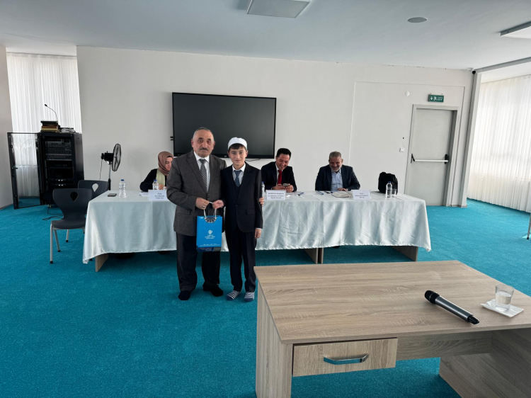 Kız öğrencilerden Bölge 1.si olan ve Kocaeli’den katılan Esmanur Tanrıverdi ile Erkek Öğrencilerden bölge 1.si olan ve İstanbul’dan katılan Muhammed Settar Yılmaz’a ve diğer dereceye giren öğrencilere Müftülük tarafından çeşitli hediyeler verildi.
