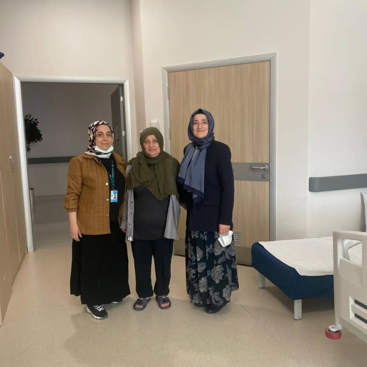 Ziyaret kapsamında, Palyatif Bakım Servisinde tedavi gören hastalar ve onlara refakat eden yakınlarıyla bir araya gelindi. Müftü Yardımcımız Şadiye Hanım, hastalara dua ederek moral verirken, hasta yakınlarını da fedakârca gösterdikleri ilgi ve destek dolayısıyla tebrik etti.