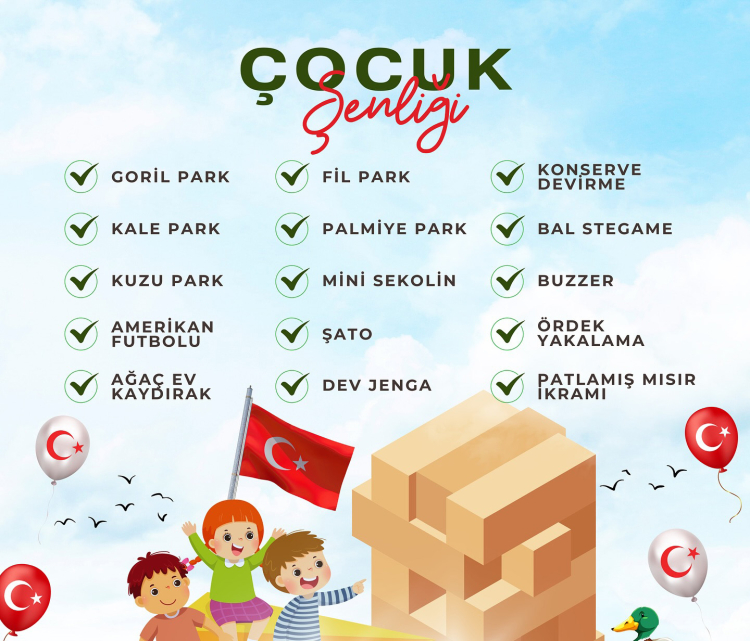 29 Ekim Cumhuriyet Bayramı 101. Yıldönümü kutlamaları kapsamında Çocuk Şenliği yapılacak. Şenlikte çocuklar doyasıya eğlenecek.