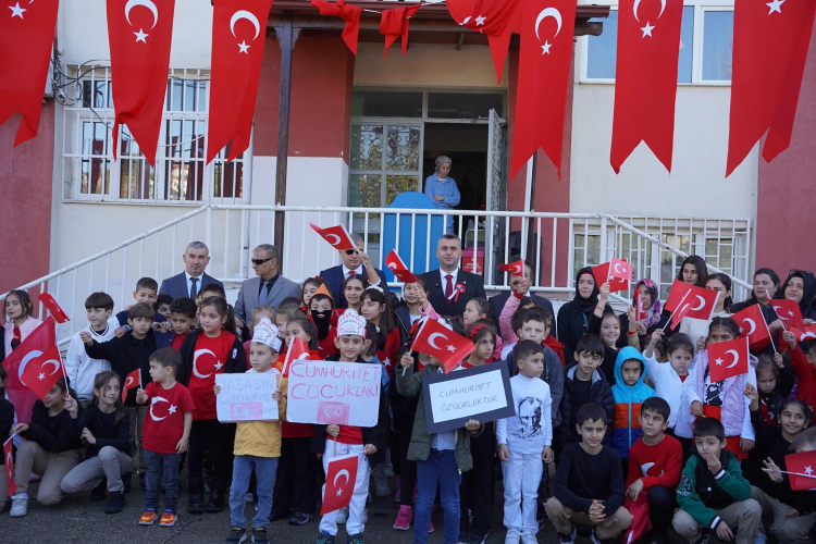 Cumhuriyet’in 102. yılı dolayısıyla büyük bir coşkuyla gerçekleştirilen etkinlikte öğrenciler, öğretmenler ve veliler bayram heyecanını doyasıya yaşadı.
