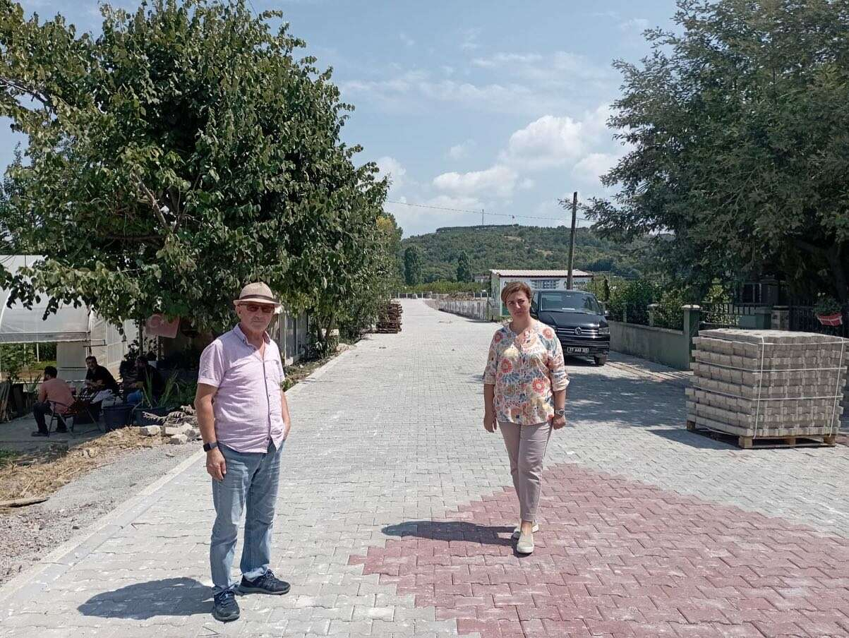 Bölgede yürütülen çalışmaları yerinde inceleyen Kadıköy Belediye Başkanı Mehmet Şahin ve Başkan Yardımcısı Gökçen Şahin Eroğlu, kilit parke yol yapım faaliyetleri hakkında ekiplerden bilgi aldı.