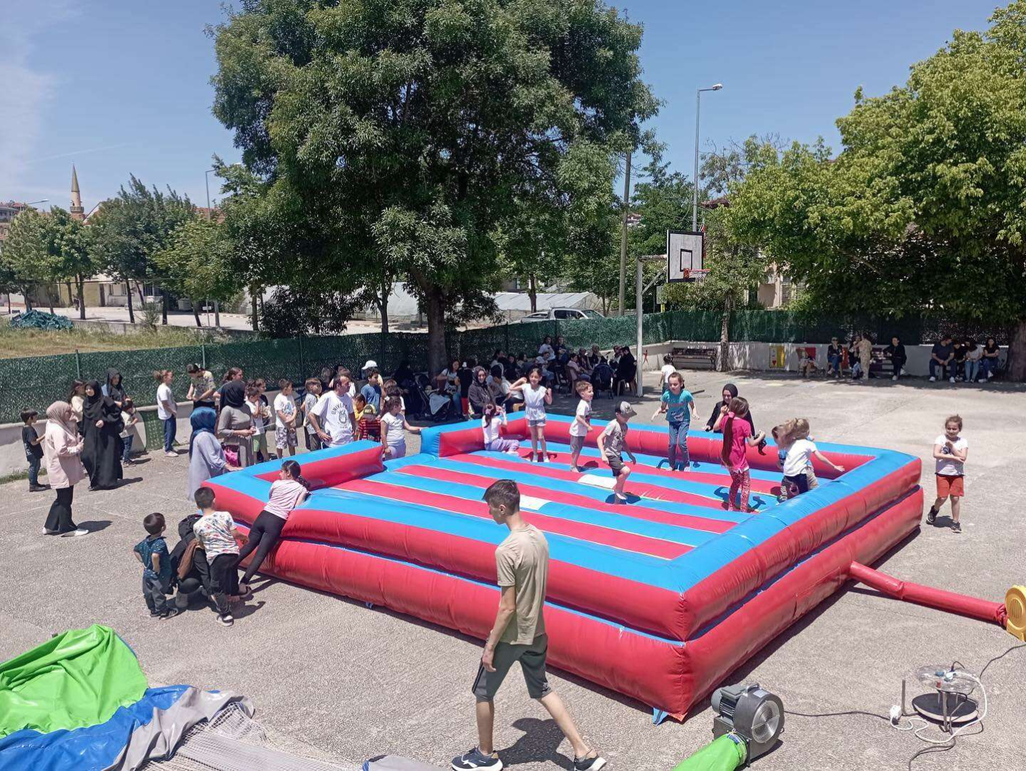 Yoğun bir eğitim sezonunun ardından karne zamanı geldiğinde çocuklar içinde ödül niteliğinde yapılan şenlikte tüm öğrenci, öğretmen ve veliler doyasıya eğlendi.