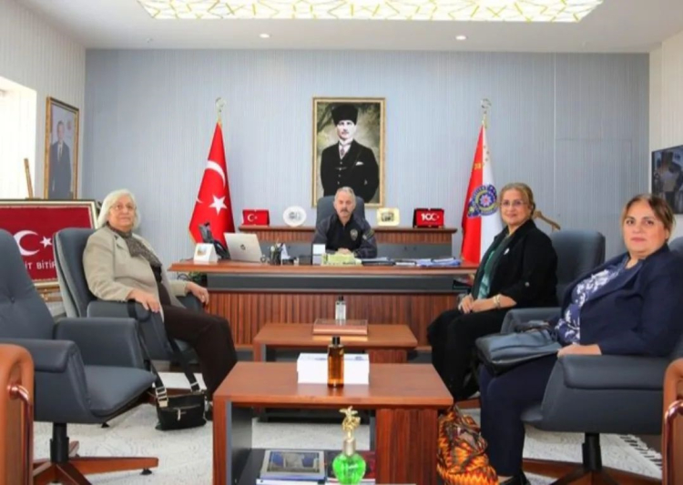 Geliştirilen yeni proje kapsamında istişarelere başlayan KATFA-DER (Uluslararası Kadın ve Toplumsal Gelişim Derneği) Başkanı Nurten Anıl Kalyoncu ve yönetim kurulu üyeleri, İl Emniyet Müdürü Ümit Bitirik'i makamında ziyaret etti. Karşılıklı fikir alışverişinde bulunulan ziyarette gelecek projeler hakkında da bilgilendirme yapıldı.
