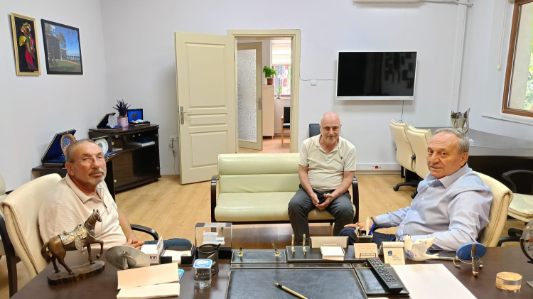 İstanbul’un ilk aronya üreticisi ve Şifa Bahçesi Aronya’nın sahibi, Yalova Kent Konseyi Başkanı Kenan Engin'in çocukluk arkadaşı Feridun Bakır ile emekli öğretmen Namık Canca, Başkan Kenan Engin’i makamında ziyaret etti.