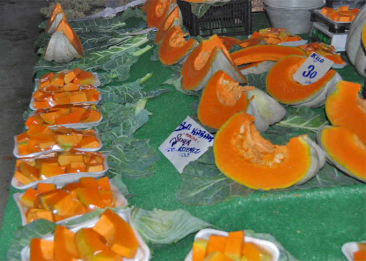 Bal kabağı faydaları nedeniyle kış sofralarının vazgeçilmezi olmaya devam ediyor. Yemeğinden tatlısına, çorbasından mezesine birçok farklı kullanım alanı olan bal kabağı Yalova semt pazarında tezgahların gözdesi oldu.