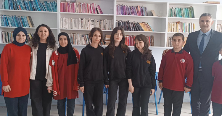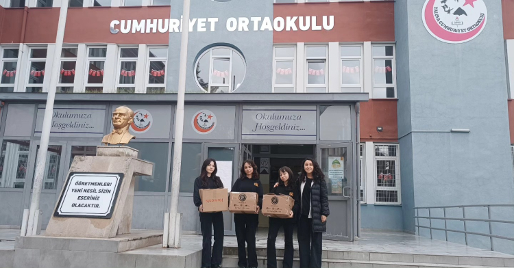Okulda düzenlenen bağış kampanyasıyla toplanan ortaokul seviyesindeki kitaplar, Cumhuriyet Ortaokulu öğrencilerine hediye edildi.