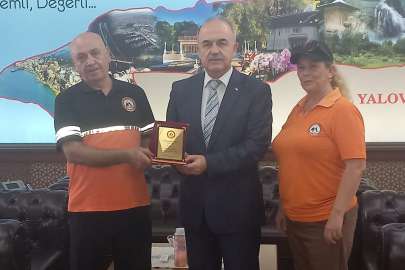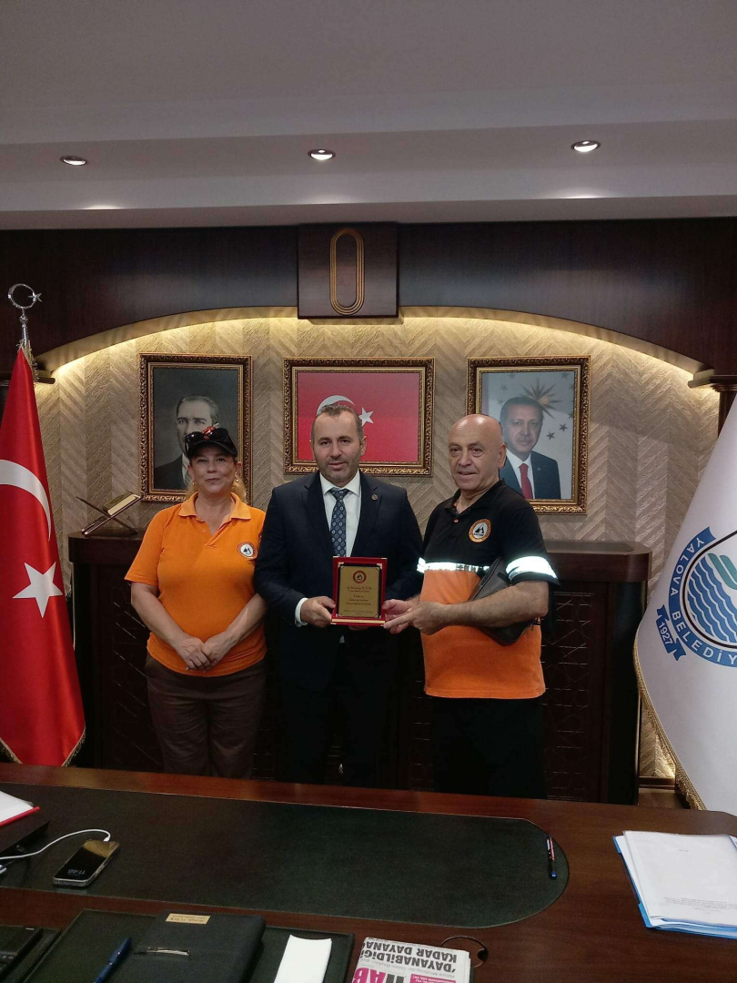 Mahalle Afet Gönüllüleri Derneği adına Dernek Başkanı Sabri Karaçam Yalova Belediye Başkanı Mustafa Tutuk'a ve ardından Yalova Valisi Muammer Erol'a hediyelerini takdim etti. Valiliğin ve Yalova Belediyesinin MAG-DER'e olan desteklerinden dolayı teşekkür eden Karaçam hazırlanan hediye plaketlerini verirken fotoğraf çekimi gerçekleşti.