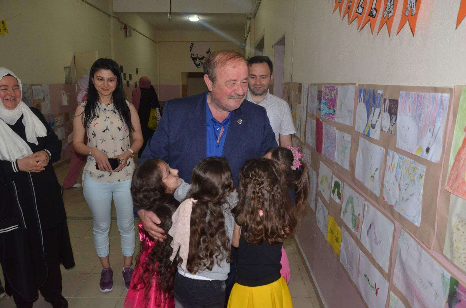 Esenköy Belediye Başkanı Mehmet Temel ve eşi Selma Temel, Esenköy Jandarma Karakol Komutanı Gürkan Demir, Adnan Kaptan İlkokulu’nda yapılan ana sınıfı yıl sonu sergisine katıldı. Ana sınıfı öğrencilerinin velilerinin de bulunduğu yıl sonu sergisi renkli görüntülere sahne oldu. Minik öğrenciler yaptıkları resimleri Temel’e gösterdi. Öğretmenler ve veliler sergiyi ziyaret eden Temel’e teşekkür ettiler.