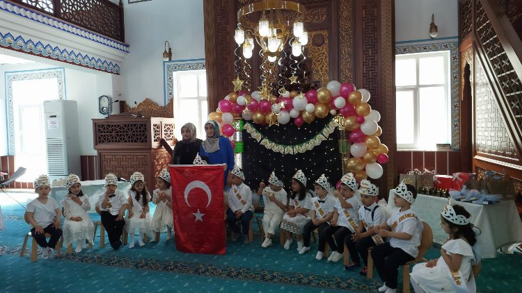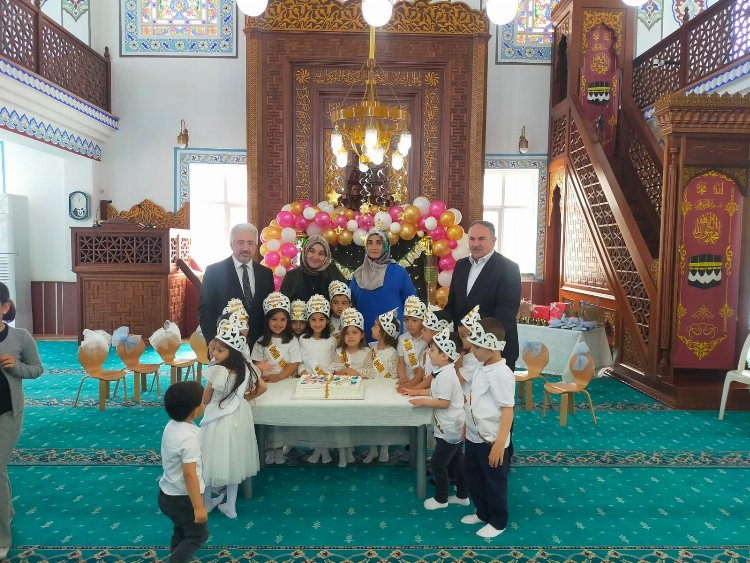 Çiftlikköy Merkez Camii Kur’an Kursu, 4-6 yaş arasındaki öğrencilerin Kur’an-ı Kerim’e geçişini ödüllendirmek için tören düzenledi.