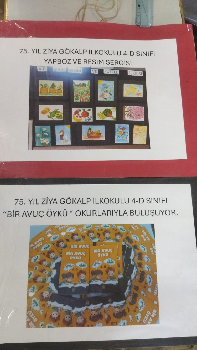 75.Yıl Ziya Gökalp İlkokulu, 4-D Sınıfı öğrencileri tarafından gerçekleştirilen ‘’Resim ve Yapboz’’ Sergisi, sanatseverlerden büyük beğeni topladı. Burada aynı zamanda da kaleme almış oldukları kitabı tanıtan öğrenciler, ‘’Bir Avuç Öykü’’ isimli eserlerini okuyucuyla buluşturdu.