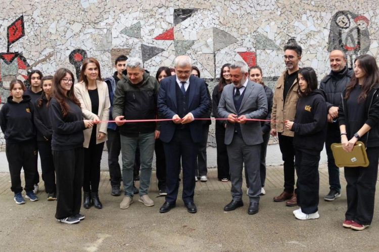 Müdür Yılmaz burada ilk olarak, görsel sanatlar öğretmenleri Mehmet Yücel ve Esma Özgür rehberliğinde resim bölümü öğrencileri tarafından yapılan mozaik ve duvar resimlerinin açılışını yaptı.