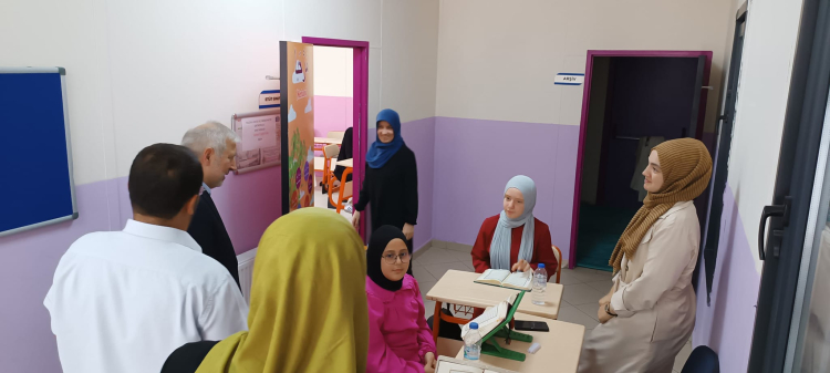 120 kız öğrencinin hem okul eğitimi hem de Hafızlık eğitimi aldığı Yalova Kız İmam Hatip Ortaokulunu ziyaret eden Yalova İl Müftüsü İlyas Yılmaztürk, hafızlık yapmakta olan kız öğrencilerin eğitim süreçlerini yerinde inceledi. Müftüsü Yılmaztürk, Haziran ayında İl Milli Eğitim Müdürü Halil İbrahim Akmeşe ve Yalova Hafız Kız Ortaokulu Yaptırma, Yaşatma Derneği arasında imzalanan Hafız Kız İmam Hatip Ortaokulunun yeni binasının yapılmasına yönelik protokol hakkında Okul Müdürü Mehmet Tatar’dan bili aldı. Öğrencilere yaptıkları hafızlık eğitiminin dünyanın en kıymetli eğitimi olduğunu hatırlatan İlyas Yılmaztürk, tatili verimli bir şekilde değerlendiren öğrencilere başarılar diledi.