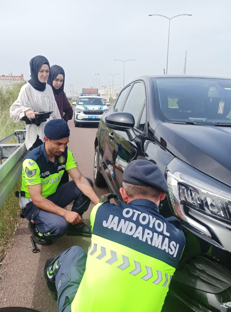 Otobanda lastiği patlayan sürücünün imdadına Yalova Jandarması yetişti