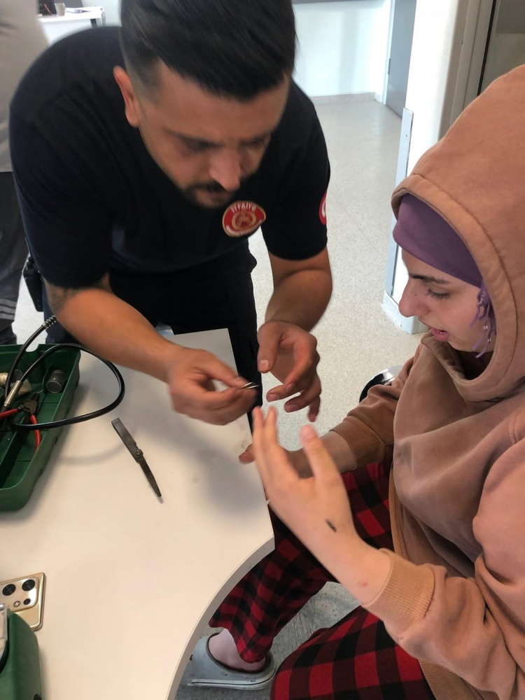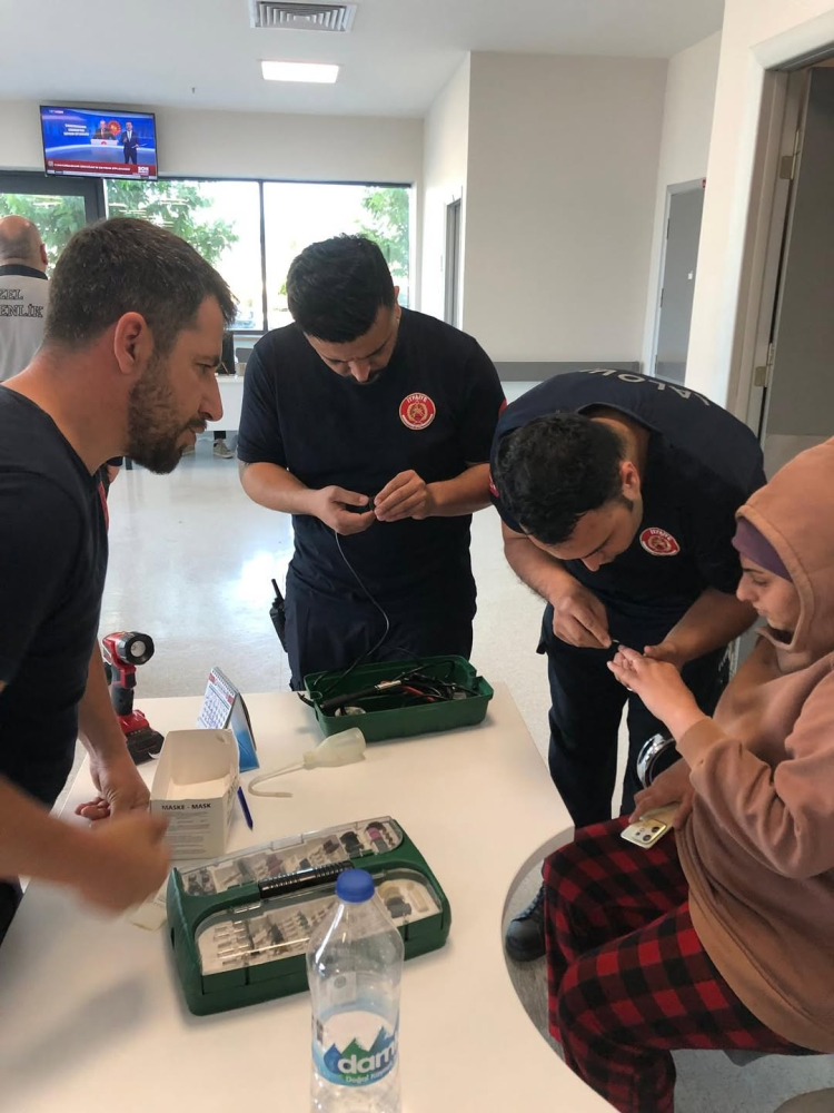 Hastaneye gelen itfaiye ekipleri, cerrah hassasiyeti ve titizliği ile müdahale ederek genç kızın parmağını sıkıştıran yüzüğü dikkatli ve sorunsuz bir şekilde çıkarttı.
