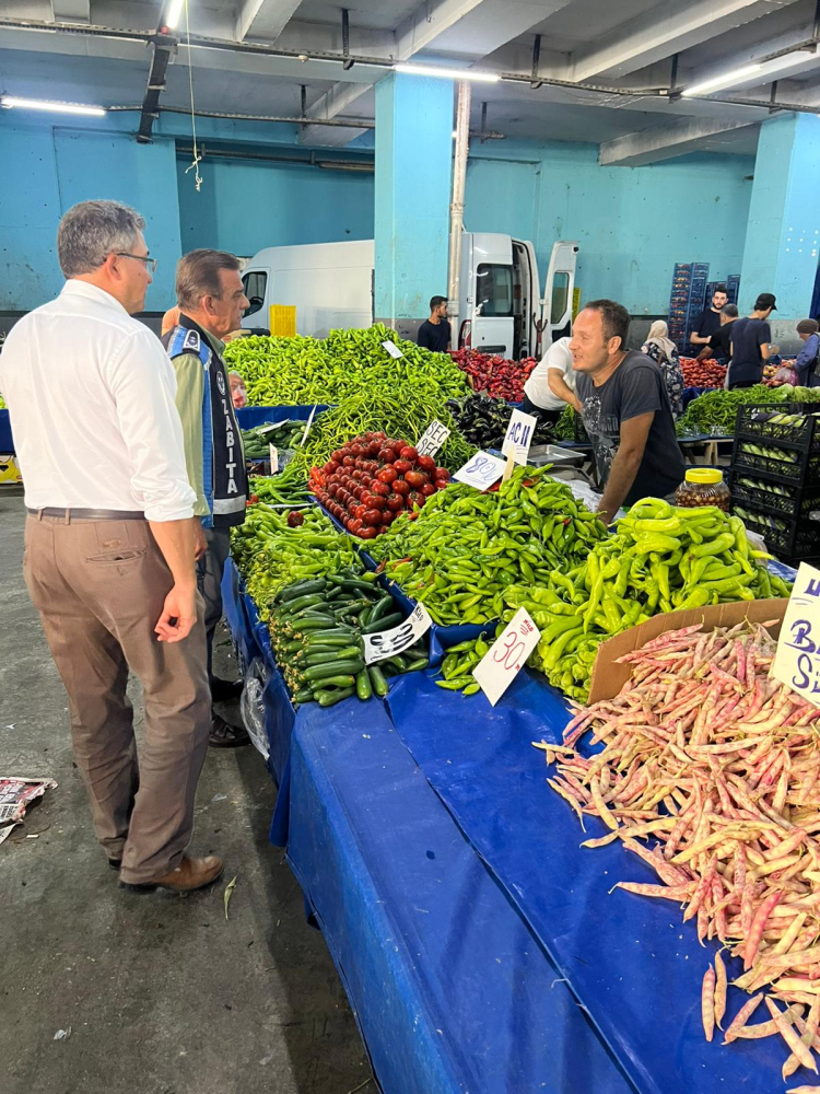 Denetimlerde pazar tezgâhlarının düzeni, ürünlerin hijyenik koşullarda satılıp satılmadığı, etiketlerin uygunluğu ve sergi işgaliyeleri mercek altına alındı. Ayrıca, pazarda satışa sunulan ürünlerin Hal Müdürlüğü kayıtlarına uygun olup olmadığı, çıkış evrakları, fiyat etiketleri ve faturalar tek tek kontrol edildi.